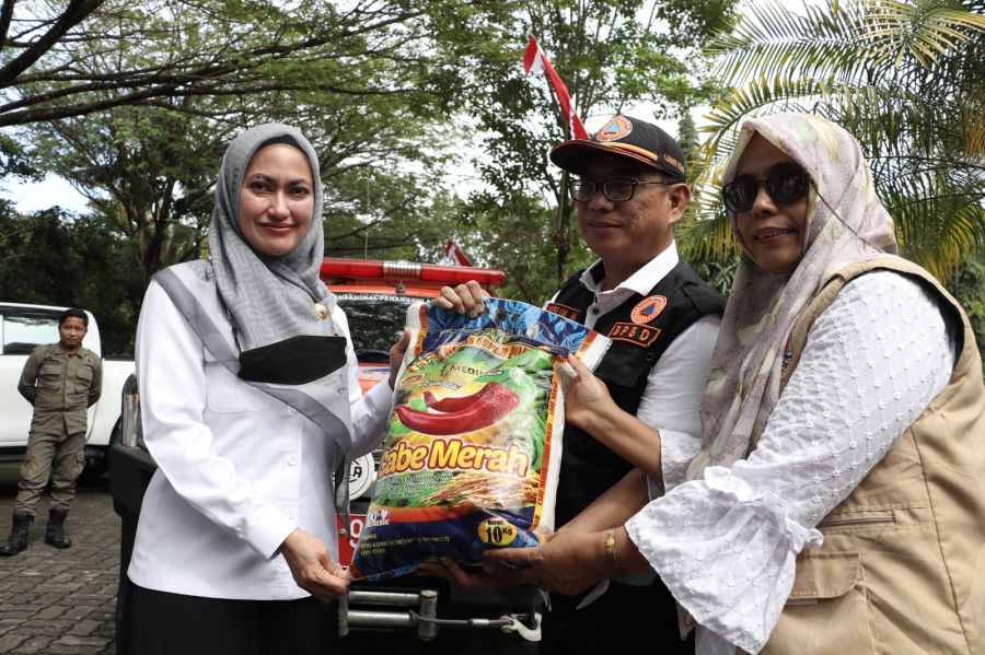 Bupati Luwu Utara, Indah Putri Indriani menyerahkan secara simbolis bantuan yang akan dikirim ke Parigi Moutong. (Dok. Humas Lutra)