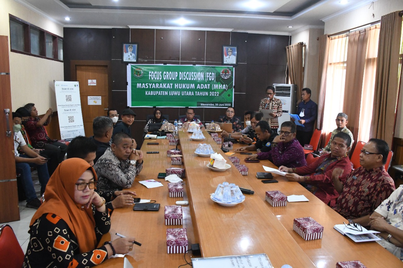 Masamba, Smartnews – Sebagai upaya tindak lanjut peraturan daerah (Perda) Kabupaten Luwu Utara No 2 tahun 2020 tentang pengakuan masyarakat hukum adat, maka Pemerintah Kabupaten (Pemkab) Luwu Utara menggelar Focus group discussion, Kamis 30 Juni 2022.