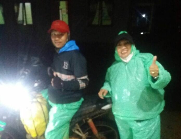 “Untung saja ada beberapa ojek di sana yang memiliki lampu motor, sehingga kita bisa saling membantu dalam keadaan kondisi lagi hujan,” beber Marhani Katma.