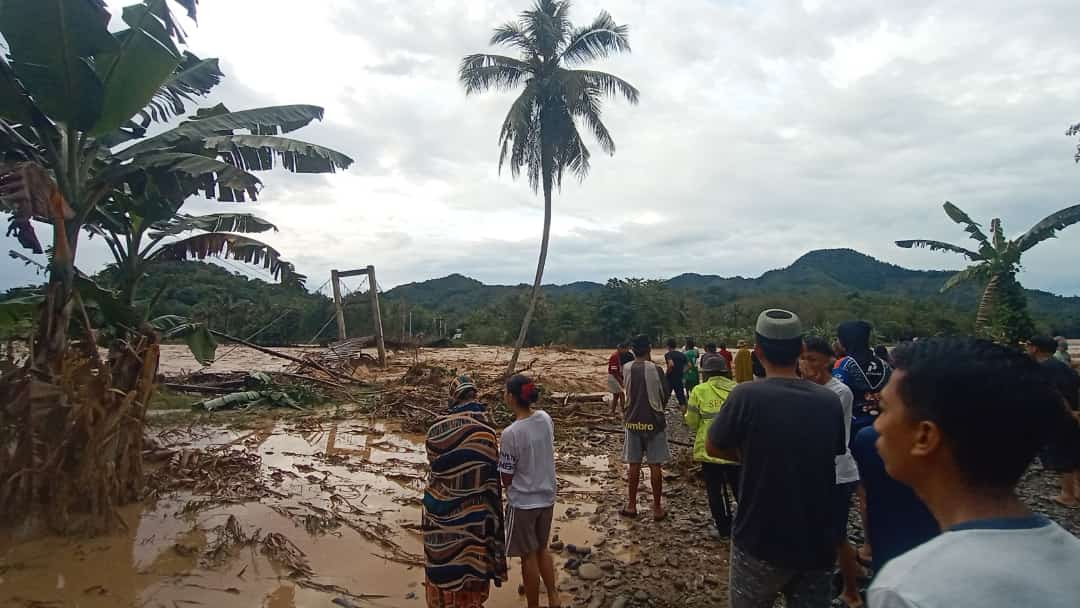 Akibatnya, Sungai Suso di Kecamatan Bajo Barat, Kabupaten Luwu meluap perang tadi.